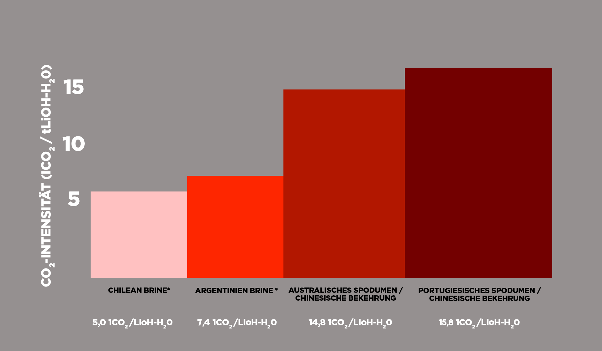 Demgegenüber kommt chinesisches Spodumenkonzentrat auf den höchsten CO2-Ausstoss.